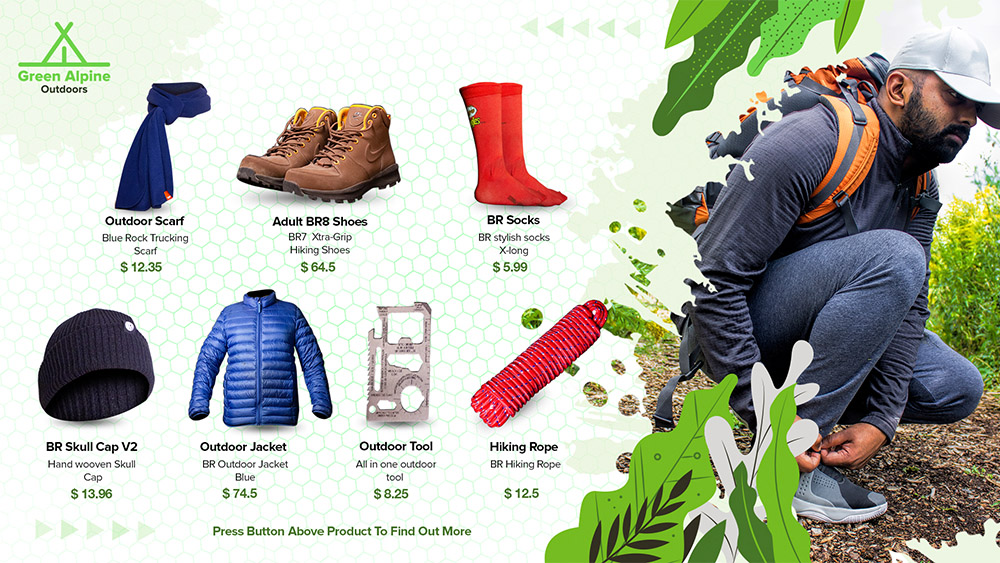 Green Alpine provide high quality rugged and tough products that will survive harsh usage and will stay together during these adventures. The products will be stylized in such a way to attract the young urban class with at most attention to comfort and practicality. These products will be made available in all major cities and towns within Ontario.